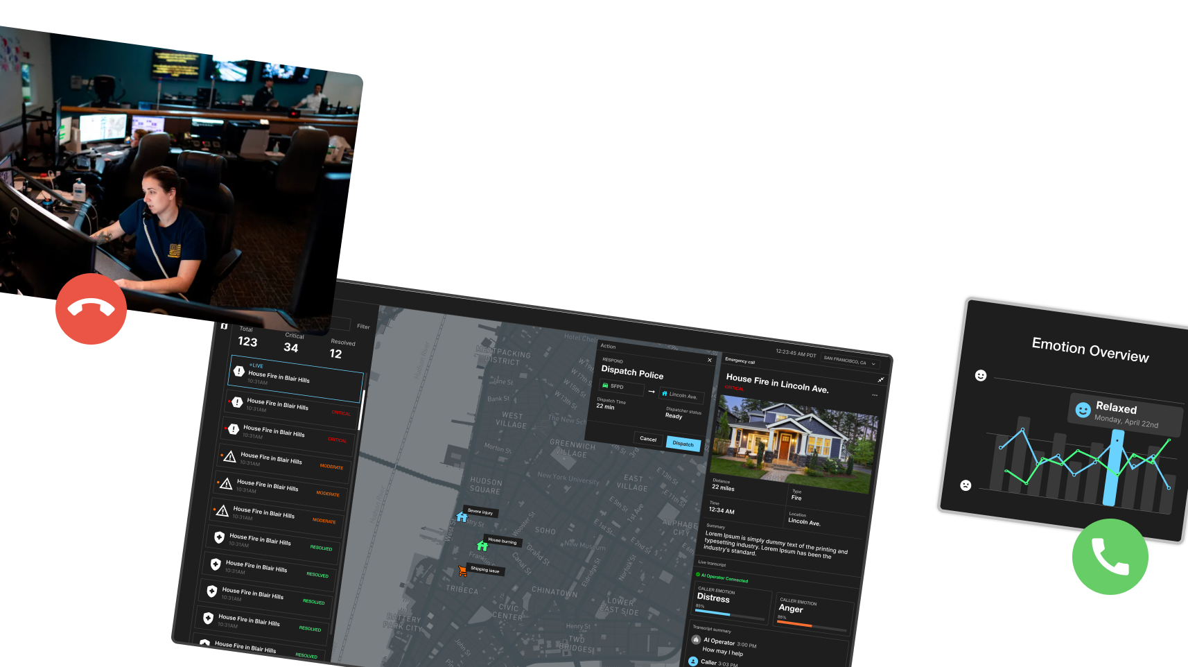 Gives dispatchers an interactive map and live call insights.